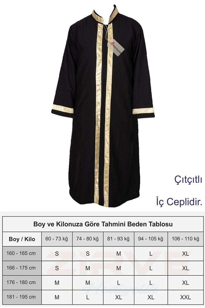 Cübbe, Sarı İşlemeli Cübbe, Sırmalı Cübbe, İmam Cübbesi – SİYAH