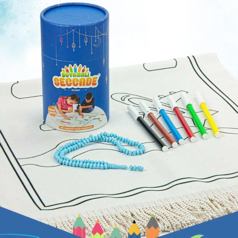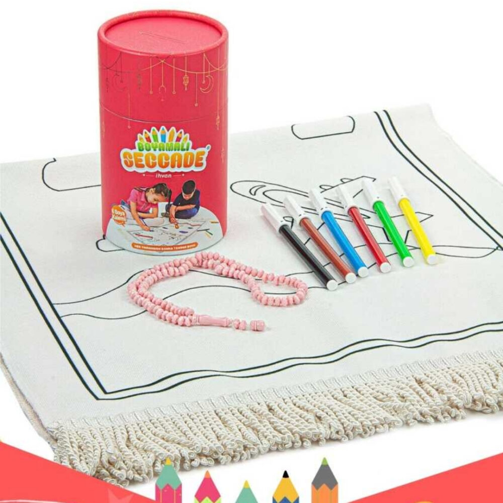 Çoçuklara Özel Boyamalı Seccade Seti, Yıkanabilir Seccade