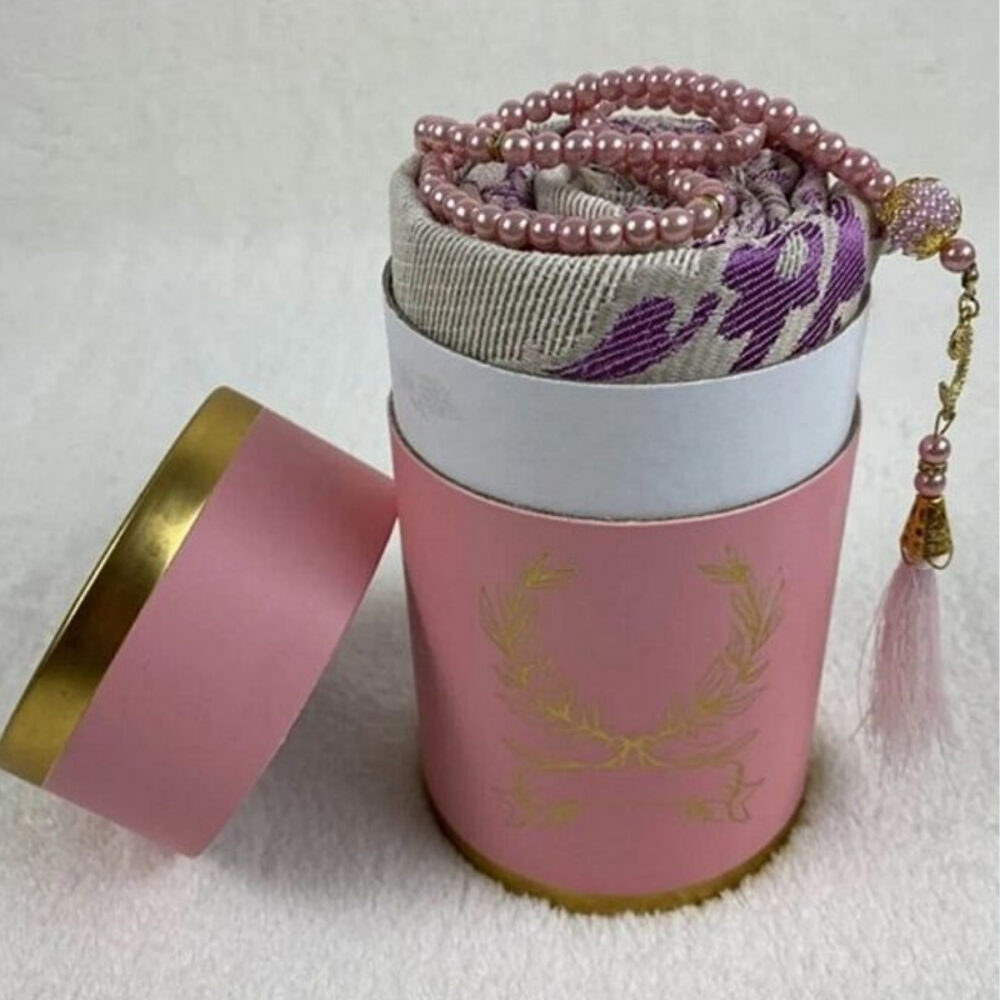 Seccade, Silindir Kutulu Seccade İnci Tesbihli Namaz Seti – Pembe Renk