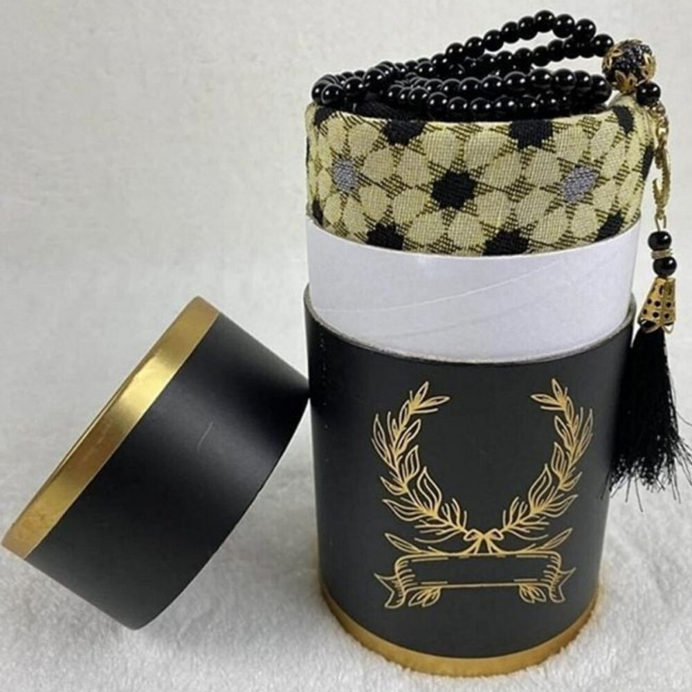 Seccade, Silindir Kutulu Seccade İnci Tesbihli Namaz Seti – Siyah Renk