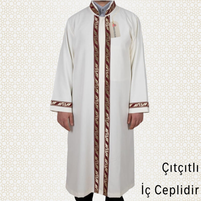 Cübbe, Bordo İşlemeli Cübbe, Sırmalı Cübbe, İmam Cübbesi – Krem