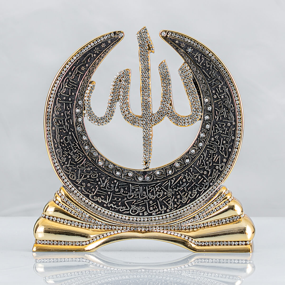 Hilal Allah Lafızlı Katmerli Ayetli – Altın Renk – Ebat : 23 x 23 cm.