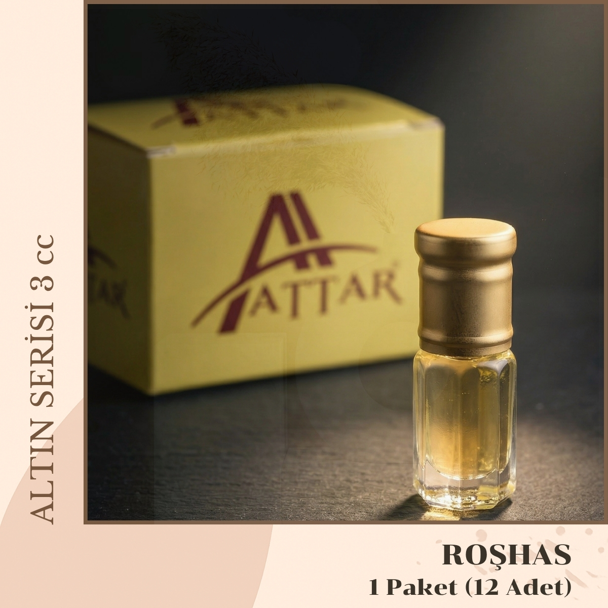 ROŞHAS – Attar Altın Serisi, Alkolsüz Esans, 3 ml, – 1 Kutu (12 Adet)