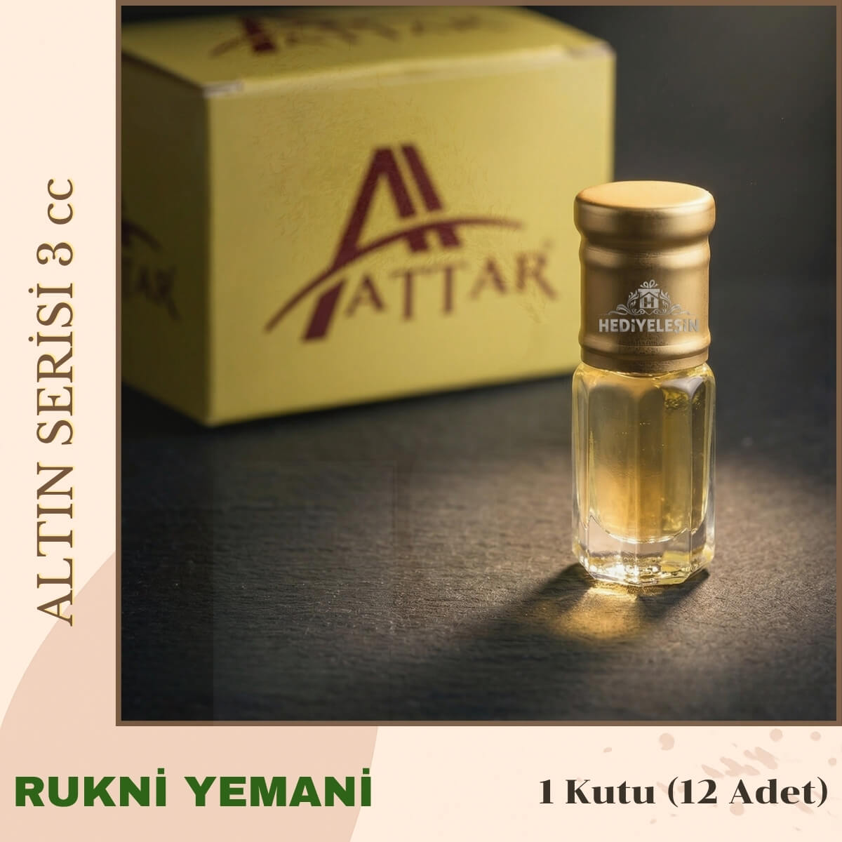 RUKNİ YEMANİ – Attar Altın Serisi, Alkolsüz Esans, 3 ml, – 1 Kutu (12 Adet)