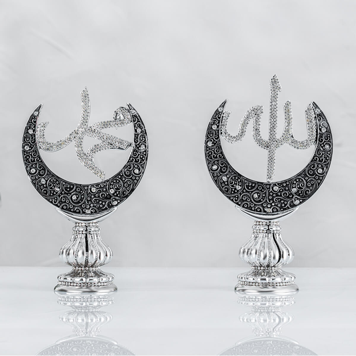 Sarmaşık Hilal Allah Muhammed Lafızlı – Gümüş Renk – Ebat : 15 x 25 cm.