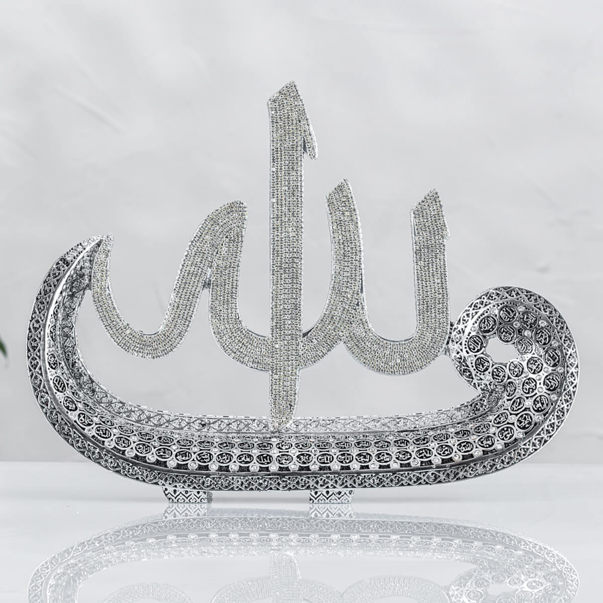 Vav Lafız Esmaül Hüsna – Gümüş Renk Büyük Boy – Ebat : 39 x 31 cm.