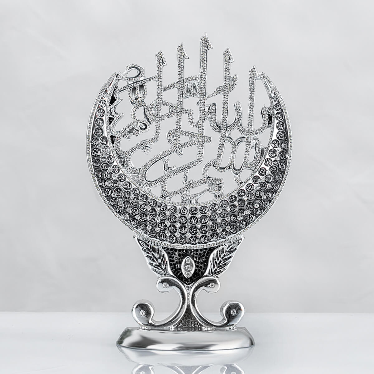 Yapraklı Hilal Besmele Esmaül Hüsnalı – Gümüş Renk – Ebat : 19 x 29 cm.